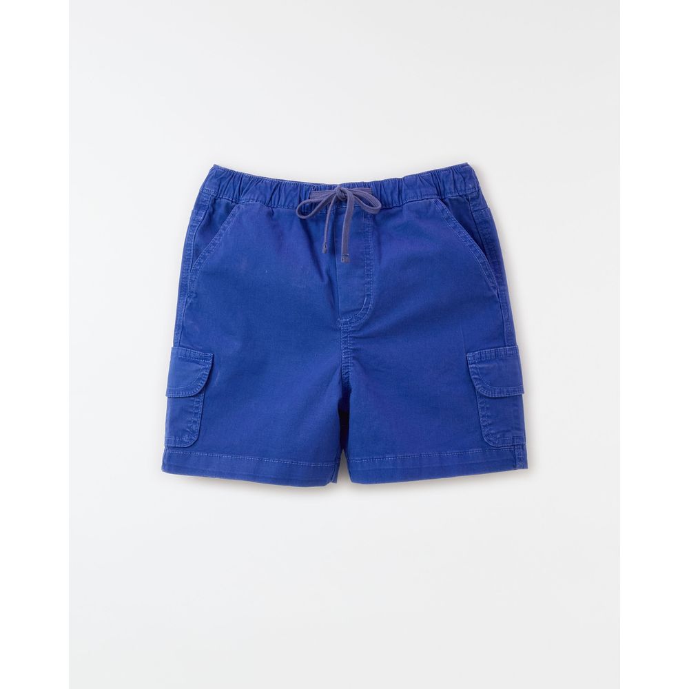 Bermuda Cargo de sarja colorida para crianças, com bolsos utilitários, detalhes pespontados e amarração regulável no cós.