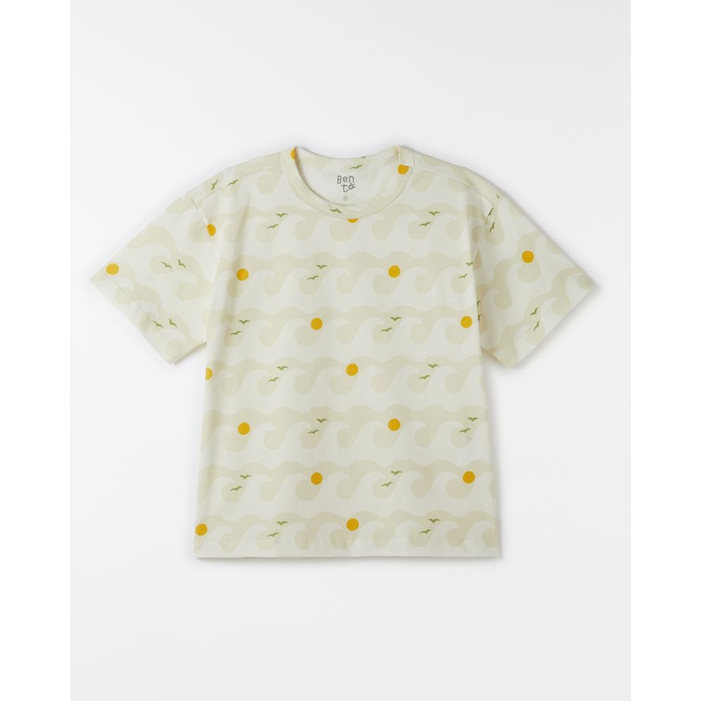 Camiseta infantil desenvolvida em tecido 100% algodão com mangas curtas, vivo canelado no decote redondo e os desenhos da estampa Navegando.