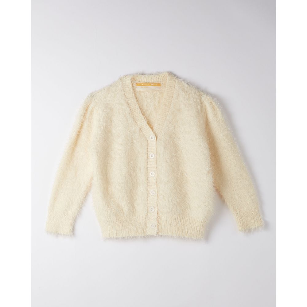 Casaco tipo Cardigan de Tricot Peludinho para crianças, com decote em V e abotoamento frontal. Parceiro dos dias mais frescos!
