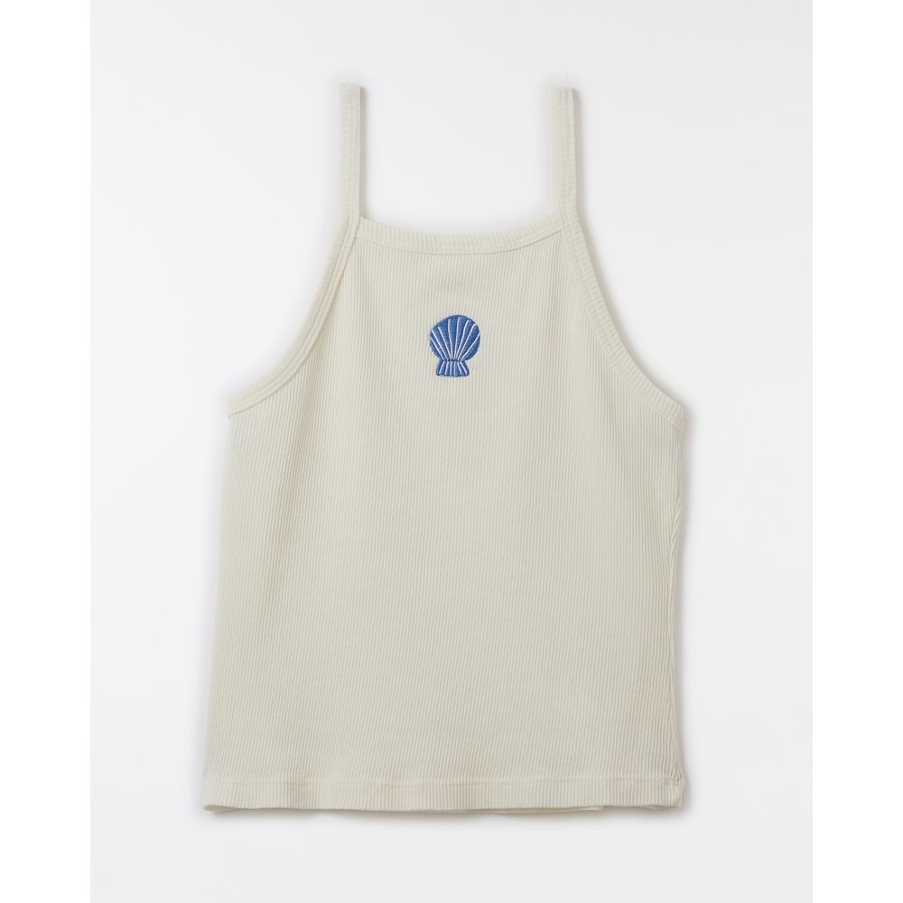 Regata Rib com bordado de Concha na parte frontal, desenvolvida em malha canelada. A roupa, parte da linha FARM Futura, possui alças e decote reto, trazendo conforto e modernidade ao visual. A textura do tecido adiciona um toque especial ao modelo versátil, ideal para diferentes ocasiões.