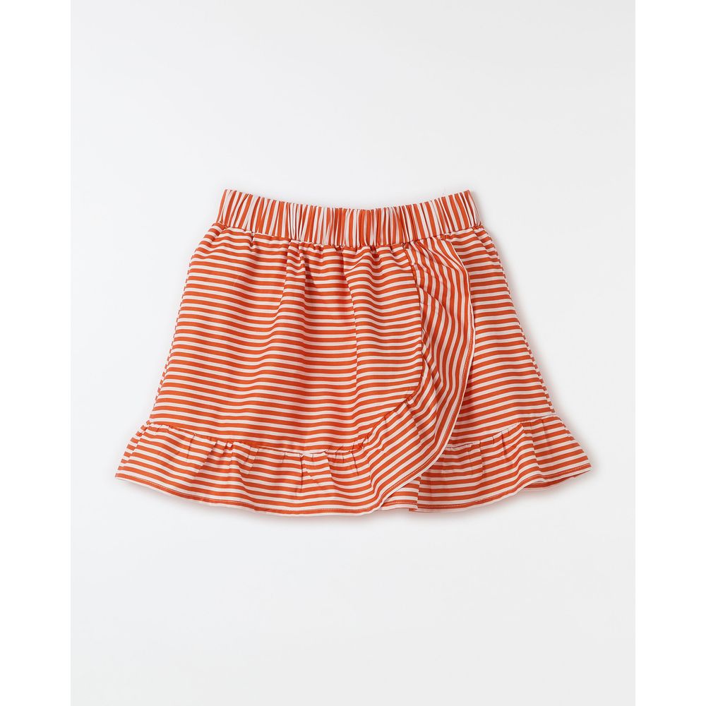 Saia listrada desenvolvida em tecido 100% algodão. A roupa, parte da linha FARM Futura, destaca-se pelo design único e charme com shape reto, elástico na cintura, babado no recorte frontal e na barra. Ideal para compor visuais casuais com um toque original. Perfeita para aquele passeio descontraído. Combine com tops variados.