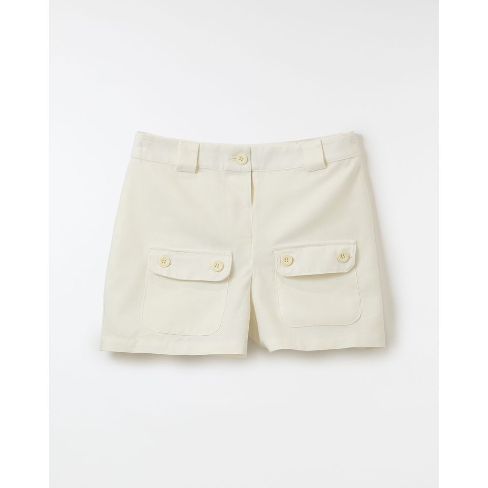 Short liso infantil desenvolvido em tecido 100% algodão, com bolsos frontais, passadores e abotoamento no cós.